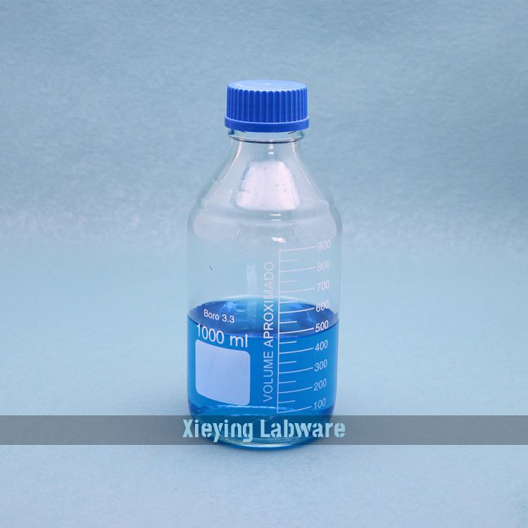 Reagent bottles are widely used in factories, schools, research institutes, tools for storing reagents, caps are made of PTFE material, there is no inner pad inside the cover, there is a sealing ring, and the cap and the bottle body can be completely tightly sealed without leaking. Liquids, caps and bottles are resistant to high temperatures of 140 degrees, and users of biochemical sterilization can also use blue cap reagent bottles.